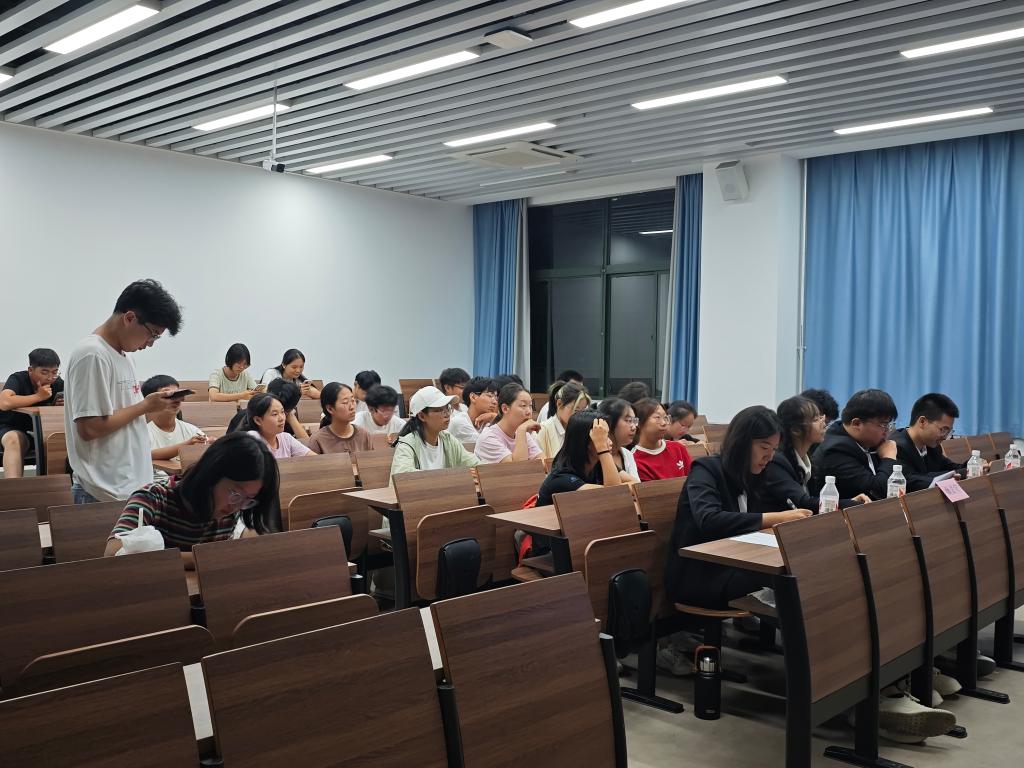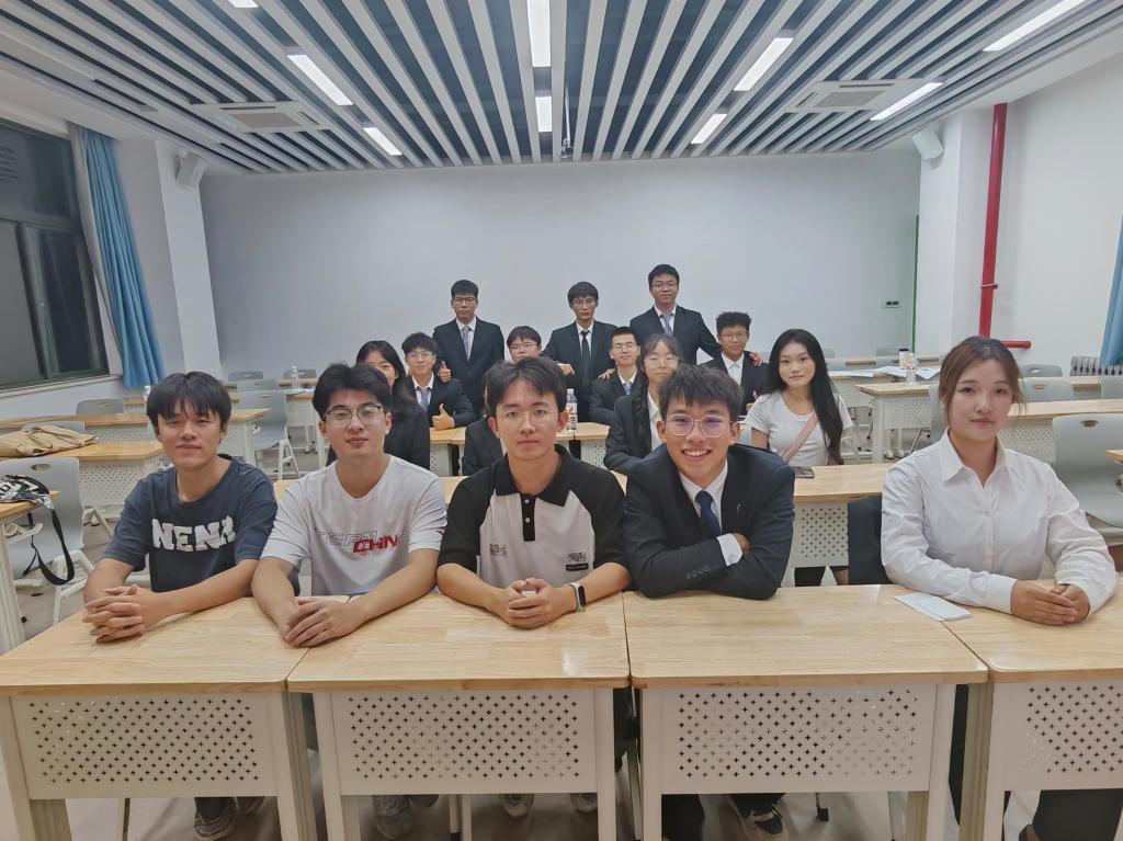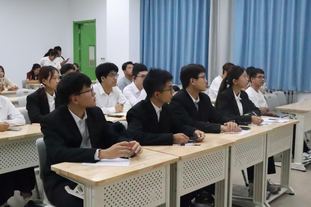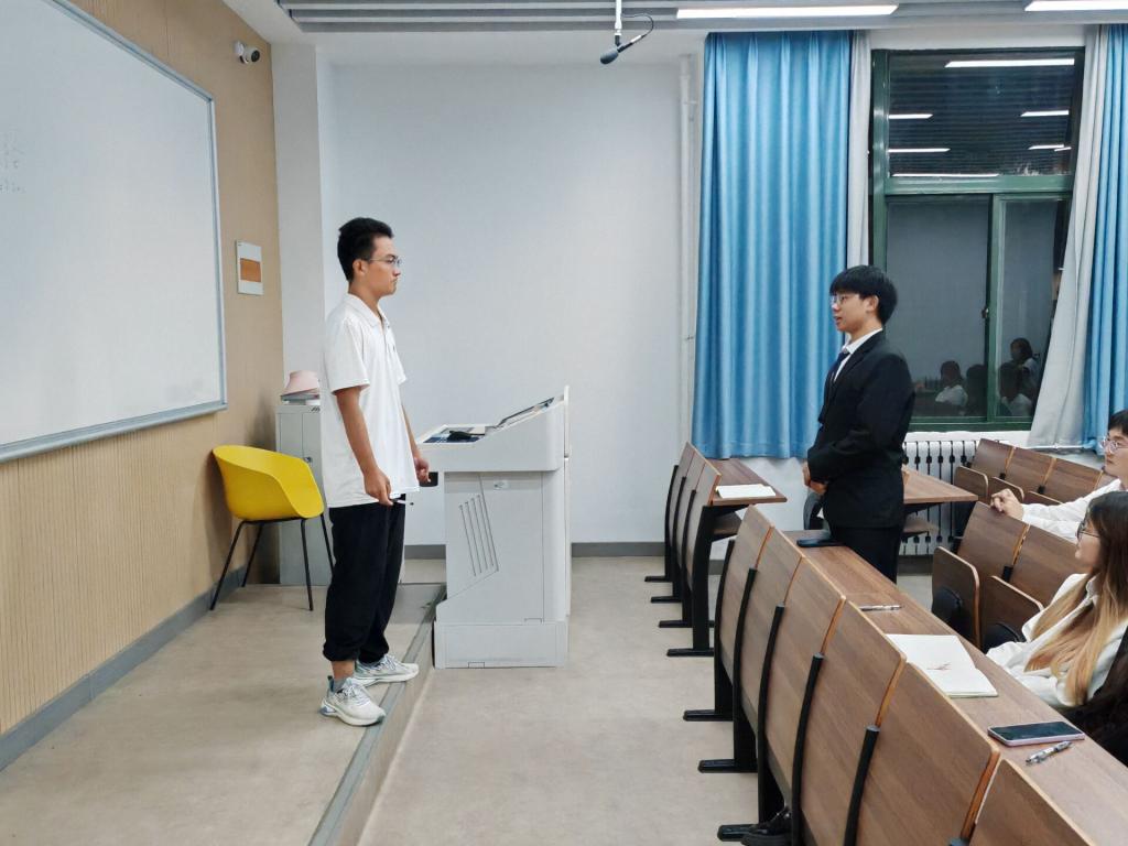 面试现场,参选同学依次进行自我介绍,面试官们紧扣介绍内容深入提问。同学们应答从容,态度认真,言语间尽显昂扬精神风貌与积极表现的决心。