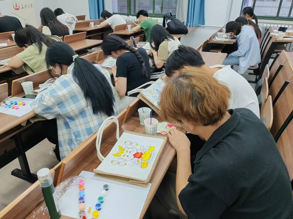 举办“笔尖流淌,心灵之舞”创意手绘活动。在活动中,同学们在彩虹心协工作人员的引导下选择自己心仪的团扇或帆布包,用颜料和画笔开始自己的艺术创作,画笔沾满颜料,在作品上绘制出绚丽的色彩,每一幅作品都是同学们用心观察世界的印记,展现了他们对生活的独特理解和深切感悟。通过这次手绘之旅,同学们学会了如何用艺术来调节情绪,增进了相互理解。活动最终展出了一系列精彩作品,展现了学生们的才华和内心世界。