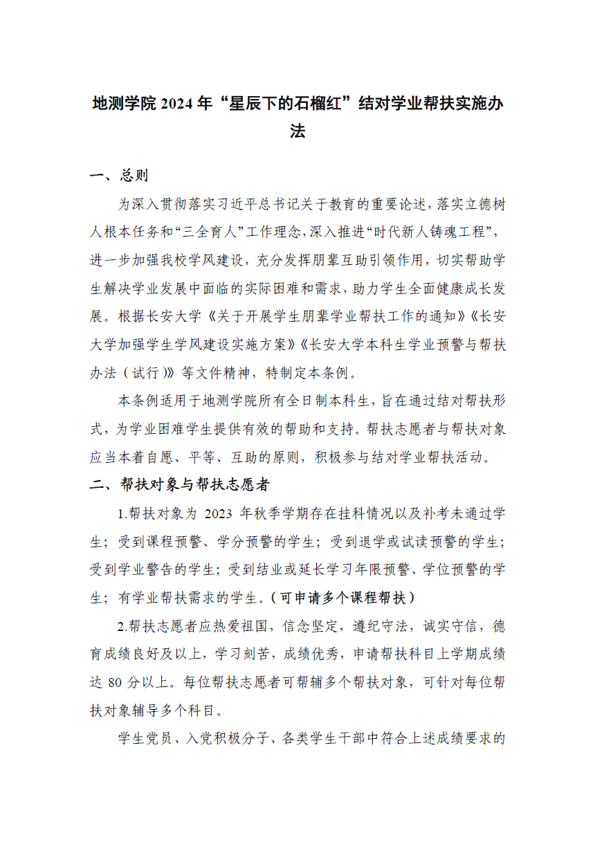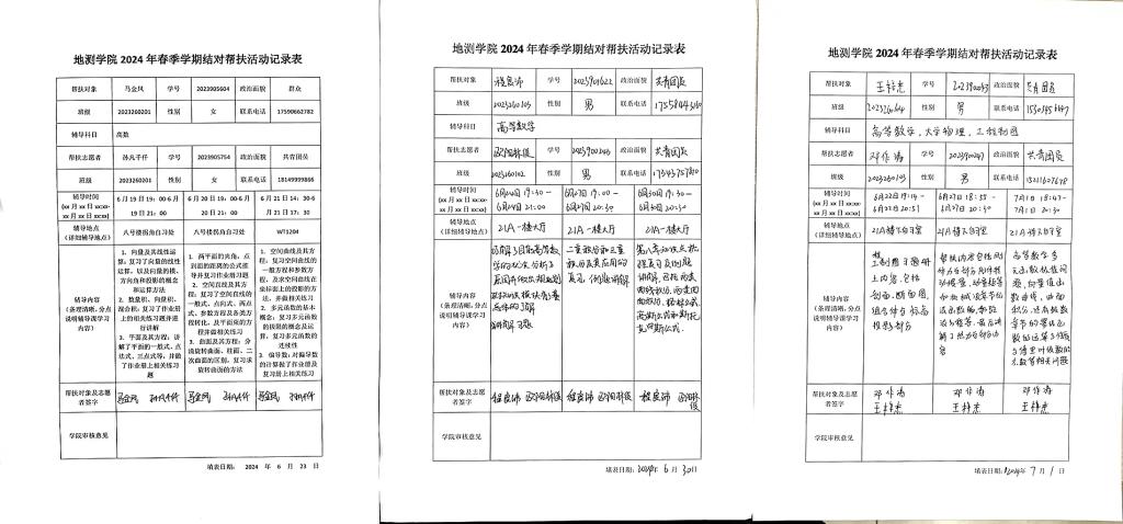2024年“星辰下的石榴红”结对学业帮扶实施办法》。细致规定结对帮辅参与主体,畅通帮辅联络渠道,提高长期学业帮辅学生覆盖率,本学期参与人数达70余人;明确帮辅过程管理,明晰帮辅形式、学生辅导内容以及辅导活动记录要求,引导小组学业帮辅更加规范化;细化帮辅效果评估及优秀志愿者奖励办法,提升帮扶志愿者参与主动性;发挥“一站式”学生社区管理优势,引导学生积极利用宿舍和社区自习室学习空间,充分整合碎片化时间开展学业指导、问题答疑等活动,进一步增强学业帮辅实效。