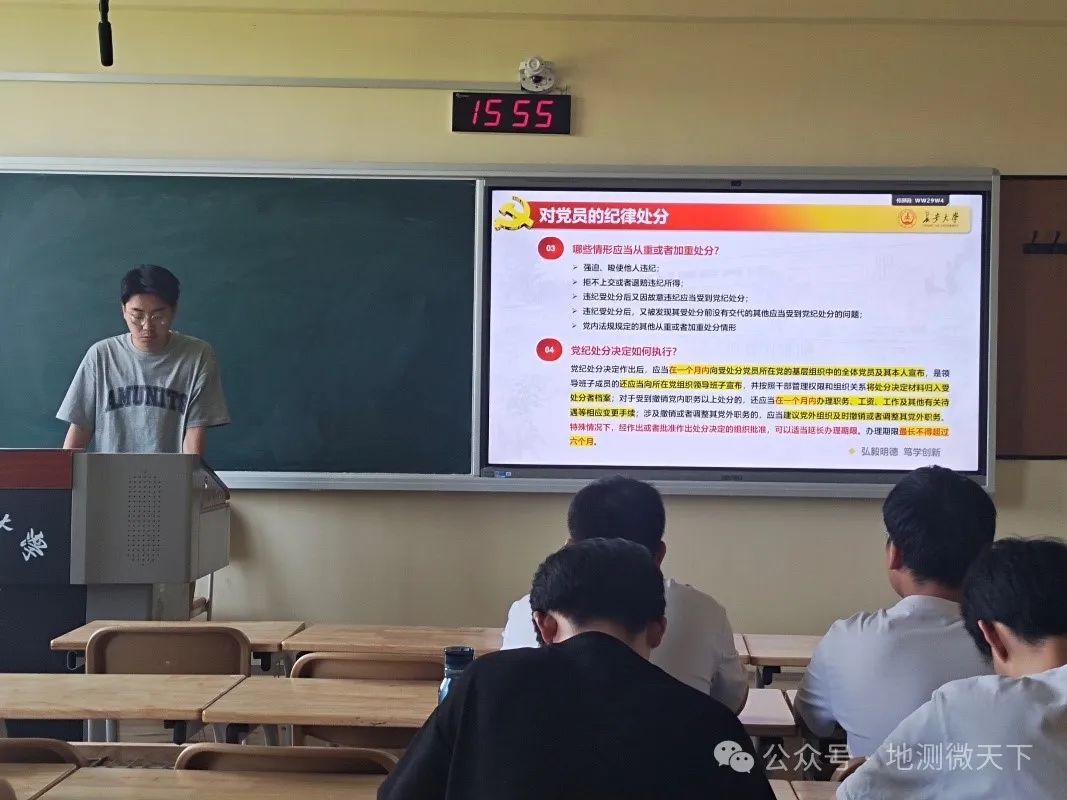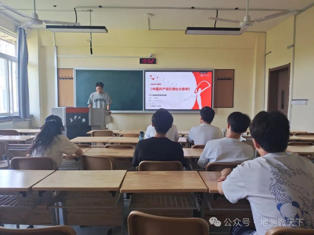 为深入学习《中国共产党纪律处分条例》,切实落实好习近平总书记在中国共产党第二十届中央纪律检查委员会第三次全体会议的重要讲话精神,2024年5月13日下午,2023级测绘专硕党支部于色色啦