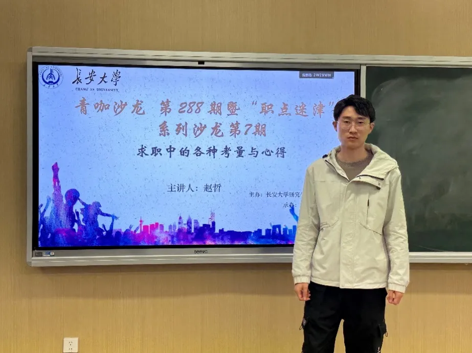 赵哲从简历制作、企业区别、面试技巧三个方面分享了自己求职中的经验。赵哲强调,简历要条理清晰、重点突出、格式清晰、排版美观,清楚呈现自己参与的科研项目等成果,并做到针对不同的岗位有定制化的微调。此外,赵哲还介绍了各类企业工作环境与薪资待遇的异同,并建议同学们在面试时要积极沟通、注意形象,培养心理韧性。