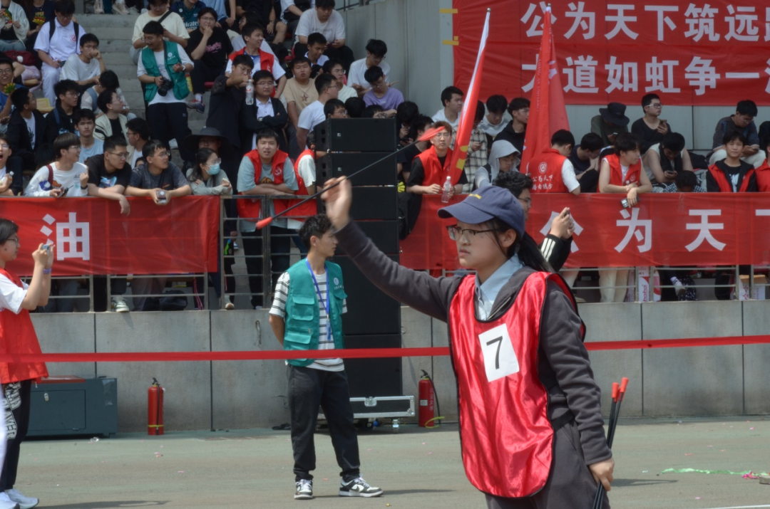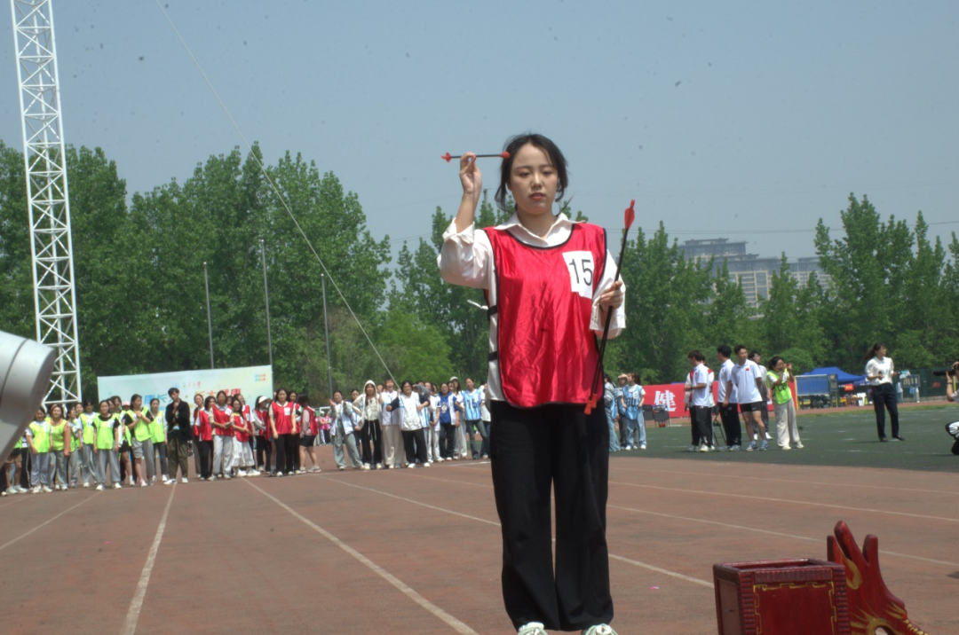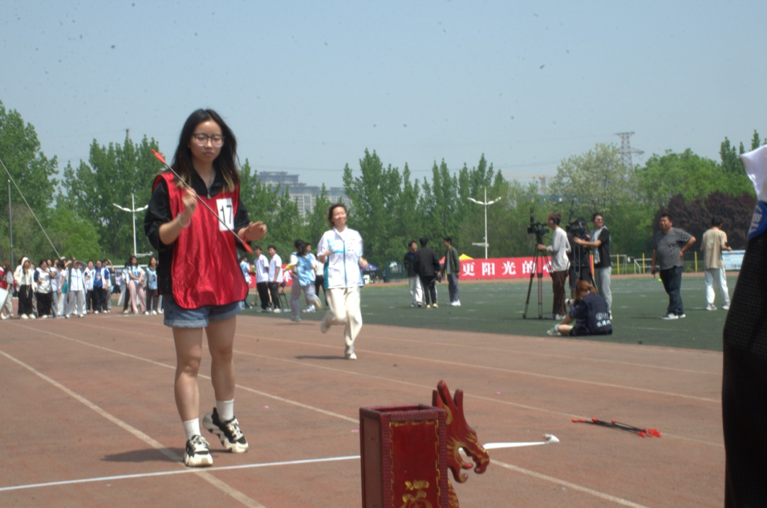 党政领导来到比赛场地,参与了投壶比赛,运动员们拼尽全力,为学院而战,观众们加油助威,呐喊声响彻云霄。