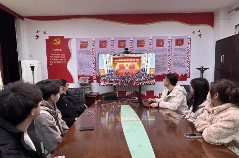 楼107会议室共同认真收看2024年全国两会开幕盛况,并于观看后开展了以“学习两会精神,践行青春担当”为主题的党支部集体学习会议,会议由支部书记温林浩主持,全体党员参与。