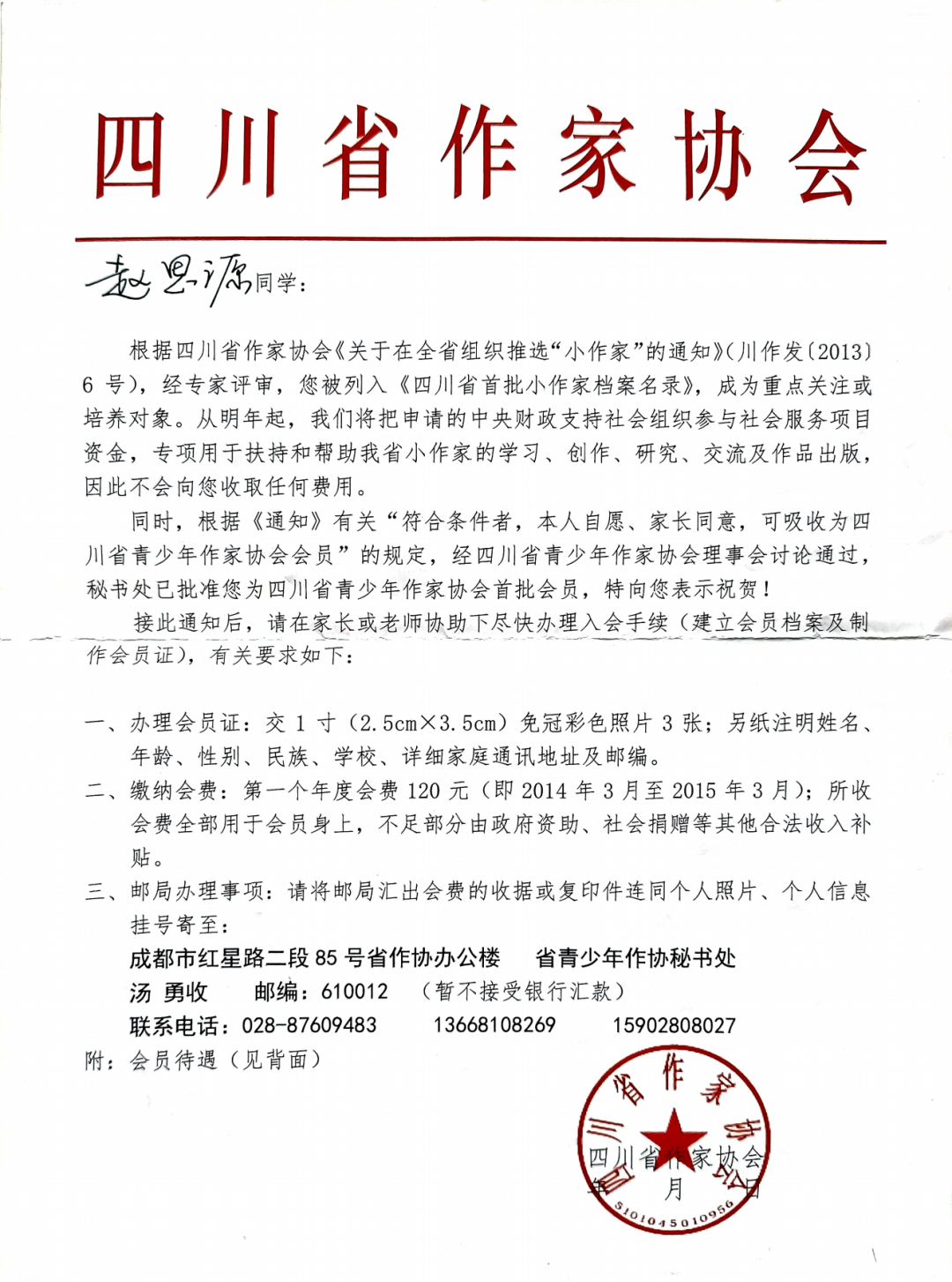 赵思源,男,中共预备党员,四川省青少年作家协会首批会员、四川省青少年文学艺术院会员、四川省文学艺术发展促进会会员。作家。主播。色色啦
