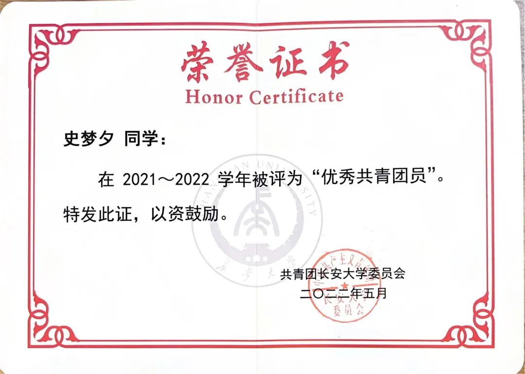 2021年度一等学业奖学金、2022年度一等学业奖学金、2023年度国家奖学金、2023年度山东高速奖学金。