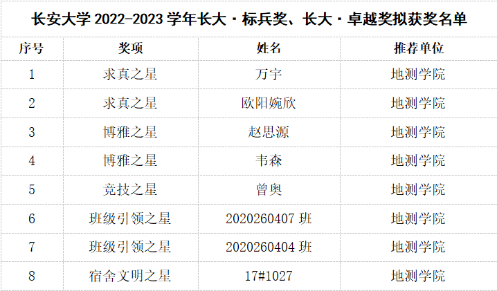 2022-2023学年度本科生先进集体和先进个人拟获奖者。色色啦