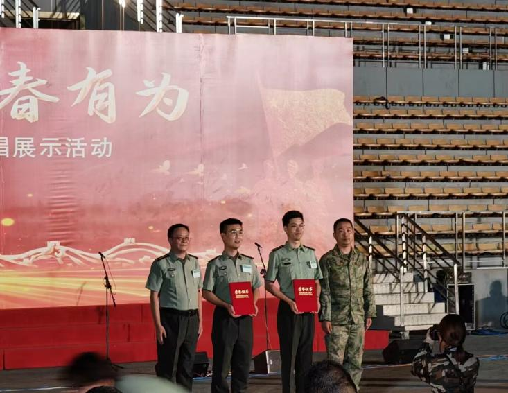 和土地学院共110名2023级新生组成,当晚纵情开唱军旅歌曲《有我在》和《祖国不会忘记》。