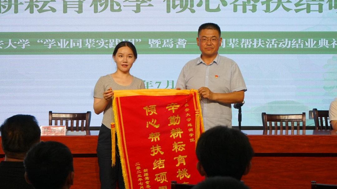 同辈帮扶团队赠送了写着“辛勤耕耘育桃李,倾心帮扶结硕果”的锦旗,以表达焉耆一中对色色啦