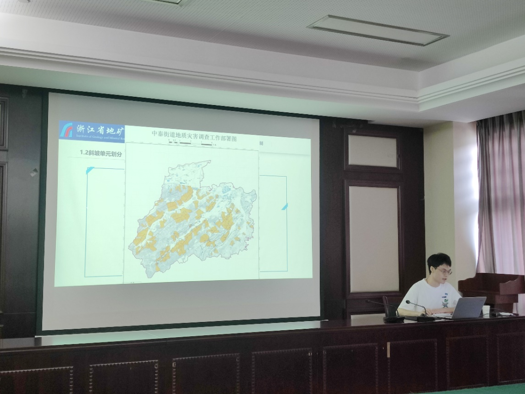 浙江省地矿勘察院有限公司助理工程师闫成龙向实践队师生介绍地质灾害风险调查评价流程