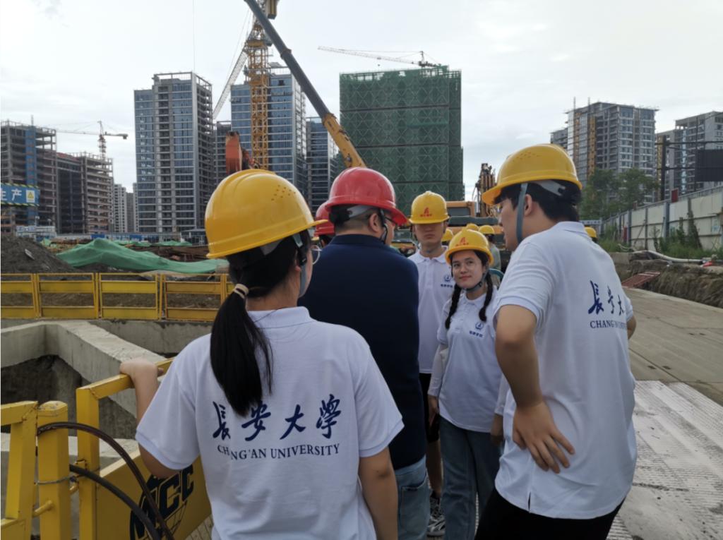 在项目介绍结束后,陈向副总、吕工程师带领实践队员来到项目工地,为实践队成员讲解了本次项目中几个坑位的施工内容,介绍了一些大型工程设备,回答了实践队员的各种问题。在参观中,陈向副总着重介绍了源泰楼的迁移问题。将这个历史建筑支撑后顶起平移36米,原址施工完成后移回原位。简单的步骤后蕴含着繁琐的工程问题。这次参观工地,对于实践队员而言是难得的,亲身感受工程的施工内容,是前所未有的。“纸上得来终觉浅,绝知此事要躬行”这句话是对实践队员的最好描写。大家在参观中,将所学知识与所见工程映照起来,加深了对专业内容的认识。