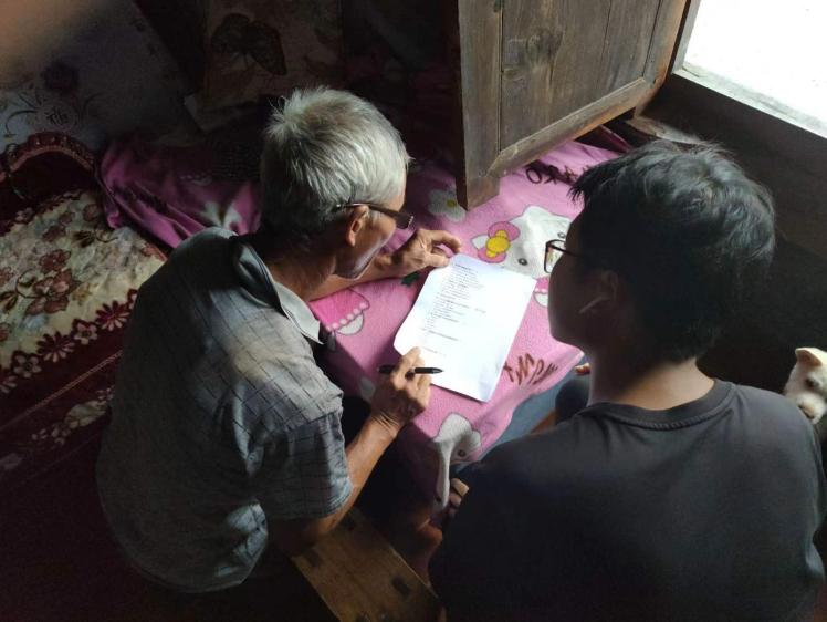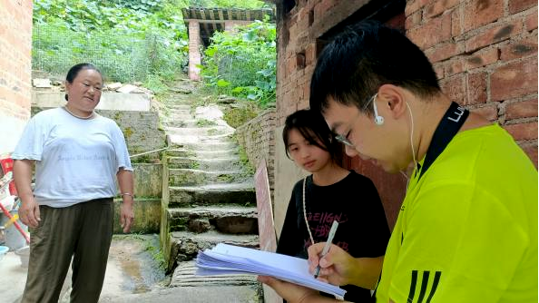 20日下午,实践队员采用线上+线下,电子、纸质双问卷、访谈等形式,深入村寨开展普通话普及程度调研暨推广普通话活动。实践队员分为若干个小组,挨家挨户展开调研,主动为文化程度薄弱的村民口述问卷题目,扎实客观做好记录。对于有儿童的家庭,实践队员呼吁提倡家长多与子女使用普通话进行交流,对于空巢老人家庭,实践队员更是和老人坐下细细谈心,陪伴老人。一路上进展顺利,实践队员收获颇丰。