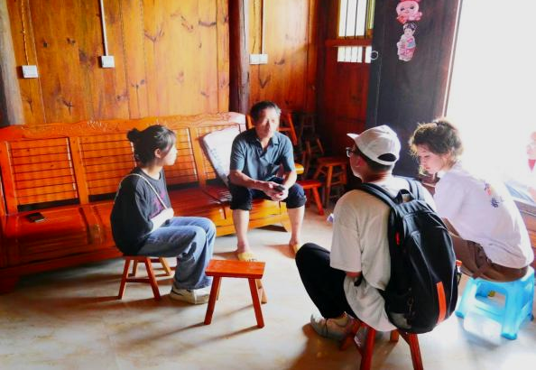 实践队员在南江村村民家中开展普通话普及程度调研