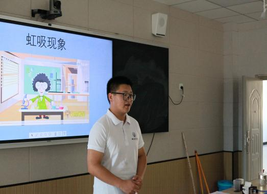 “北辰之行悟初心使命·水文科普助乡村振兴”暑期社会实践队在甘肃正宁县北辰小学开展了实地展板演说模拟及实景趣味实验模拟。实践队根据前期分工,将成员分为两组,分别负责展板演说和科普实验。