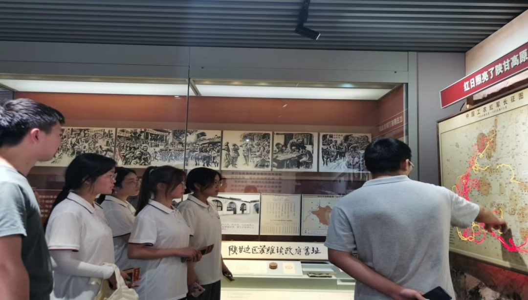 团队首先进入习仲勋纪念馆,参观了解革命先辈的生平事迹。感悟先辈无私奉献的革命精神。在纪念馆中,团队深入了解了习仲勋同志的成长经历和革命历程,深刻学习老一辈无产阶级革命家的革命理念和高尚情怀。队员们通过习仲勋年表来了解习仲勋同志“奋斗一生,快乐一生”的奋斗精神,通过纪念馆中办公场景的再现感受先辈平易近人,一心为民的工作态度。参观过程中,队员们互相学习讨论了照片与展览物件背后的故事,在纪念馆的参观过程中,实践队员们更加深刻的了解习仲勋同志对党的建设,国家经济建设方面所做出的卓越的贡献。