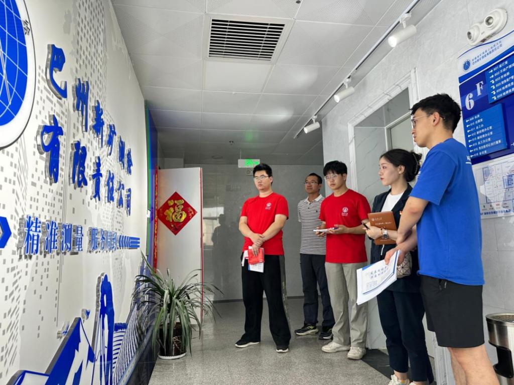 2020届校友张超峰热情接待了实践队一行,带领实践队参观了新疆地矿局第三地质大队地质调查研究所、巴州新矿测绘有限责任公司的办公场所及主要科室。