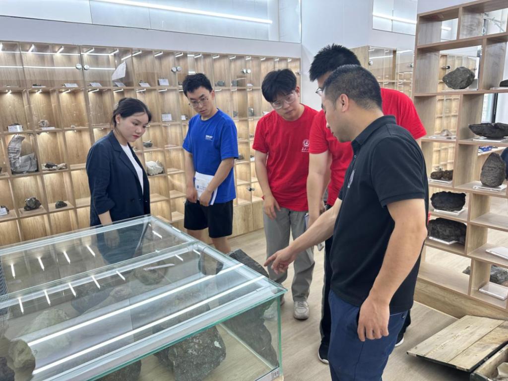 座谈结束后,地质调查所咨询顾问夏昭德老师带领实践队一行参观了地质博物馆,介绍讲解了部分稀有金属样本和一些独特矿石标本,也介绍了这些样本带回来的艰苦历程,鼓励实践队员要有理想、敢担当、能吃苦,肯奋斗,自觉将地质人的“小我”融入祖国强盛发展的“大我”,为实现中华民族伟大复兴的中国梦贡献力量。