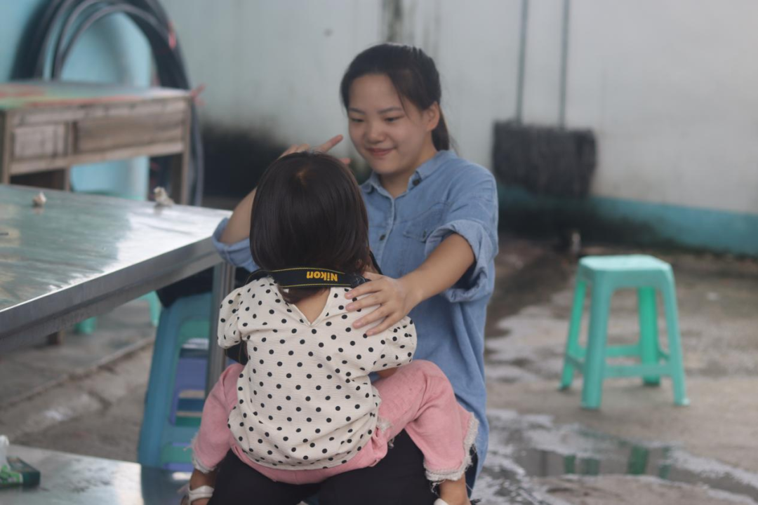 孩子在给实践队员拍照
