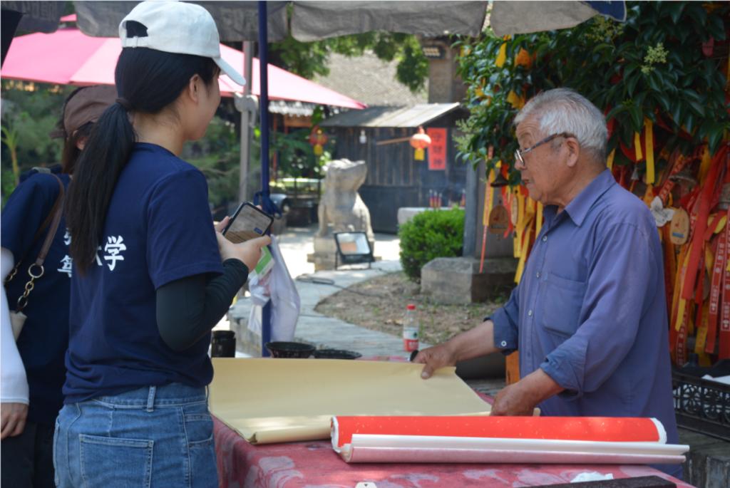上午,实践队在袁家村内进行了深入走访,了解的对象不限于袁家村的商户,同时包括袁家村消防组织、写毛笔字的爱好者等等。