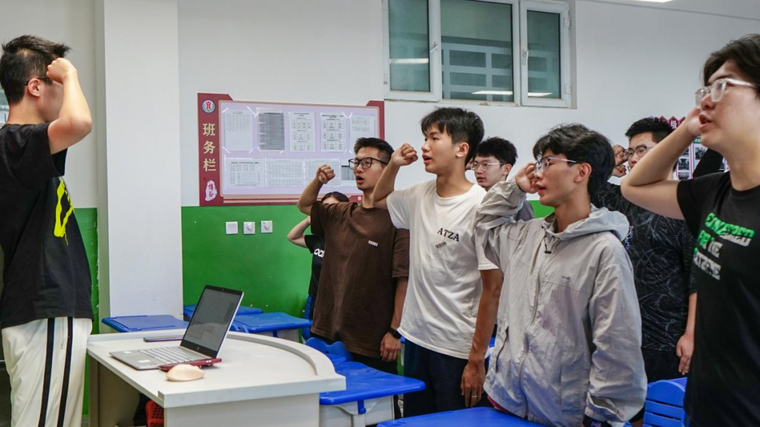 赴新疆巴音郭楞“践悟党的二十大·携手共绘同心圆”暑期社会实践队在焉耆县第一中学知性楼4楼高三(五)班隆重举行了临时党支部成立大会暨主题教育党课。实践队指导教师韩树鹏担任临时党支部书记,实践队志愿者预备党员张博晨担任组织委员,实践队志愿者预备党员陈晓龙担任宣传委员。