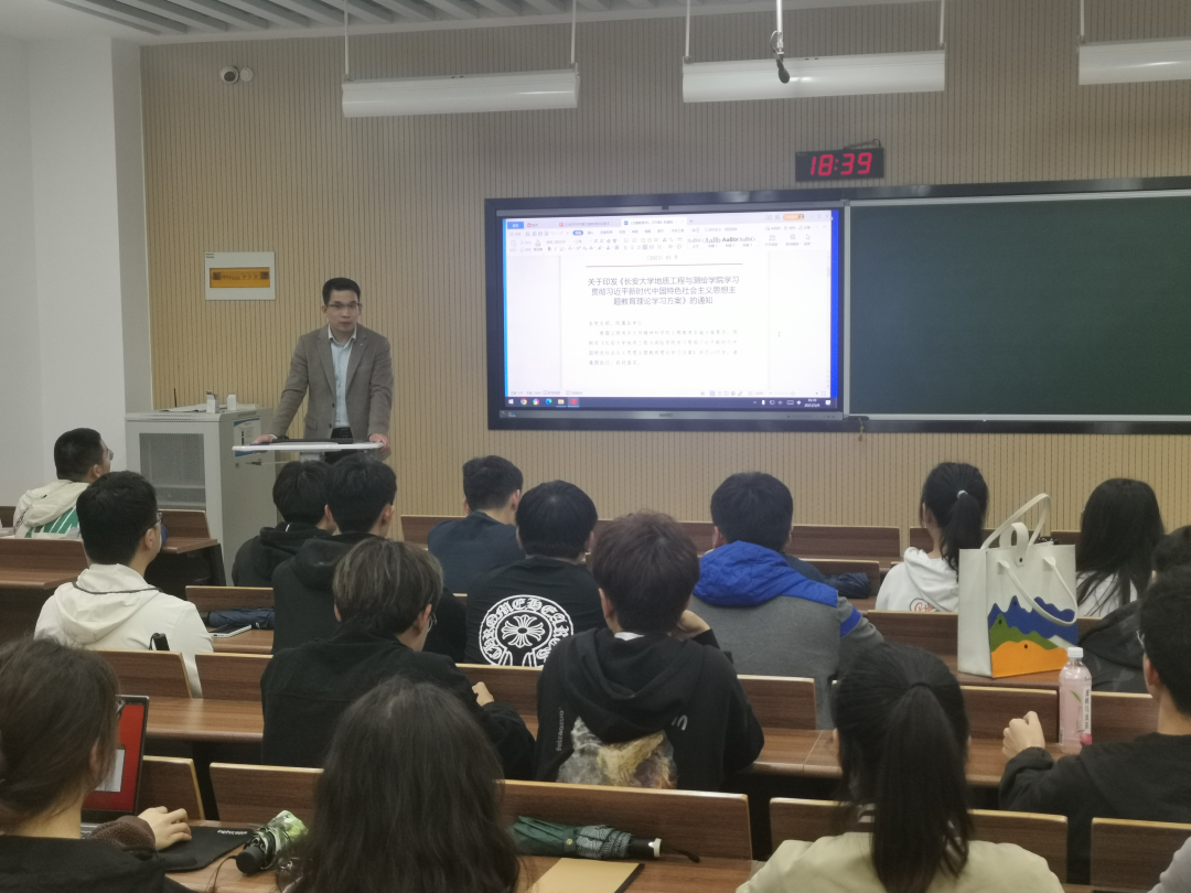 5月8日-11日,根据学校和学院主题教育工作安排,学院本科生党支部组织开展学习贯彻习近平新时代中国特色社会主义思想主题教育专题学习,深入学习领会习近平总书记在学习贯彻习近平新时代中国特色社会主义思想主题教育工作会议上的重要讲话精神。