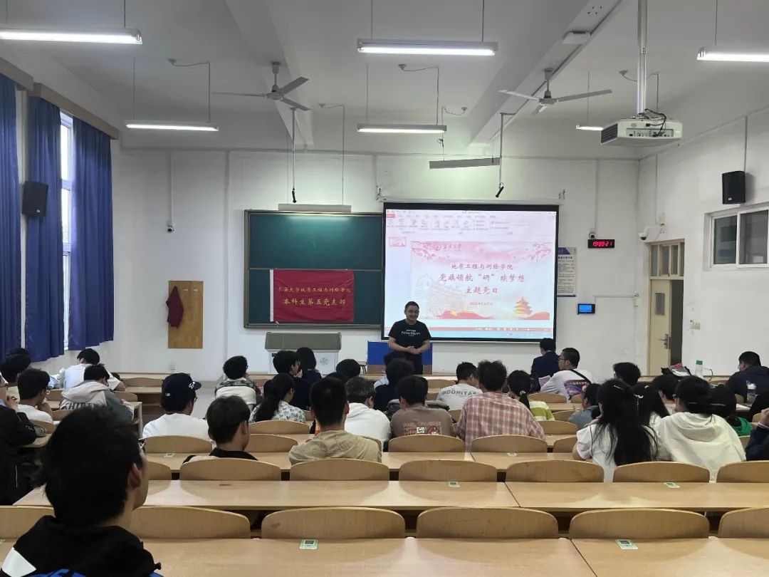 本科生第五党支部于WH2107教室组织开展“党旗领航,‘研’续梦想”主题党日活动,支部全体党员、思政班主任邓煜和部分低年级本科生共同参与此次活动。活动由支部书记杨海城主持。