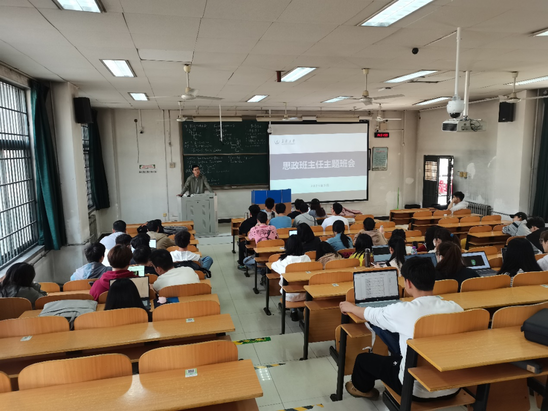随后,思政班主任张延成围绕“就业与考研”的话题,向同学们讲述了考研的意义、前景和安排,为同学们进一步理清考研动机提供了指引,并通过实际案例分析帮助同学们认清目前的考研形势和合理进行院校专业的选择。