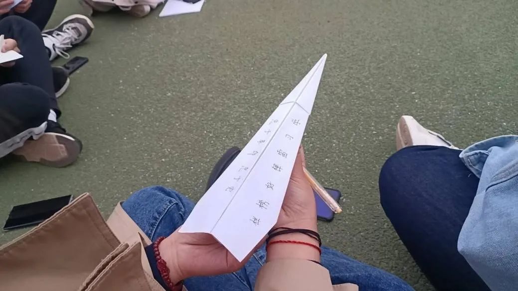 紧接着,沈硕同学弹吉他为同学们的歌声伴奏,“学习雷锋好榜样,忠于国家忠于党......”操场上,是同学们嘹亮、充满希望的歌声。随后,同学们在纸飞机上写上自己的活动心得,一起放飞希望。