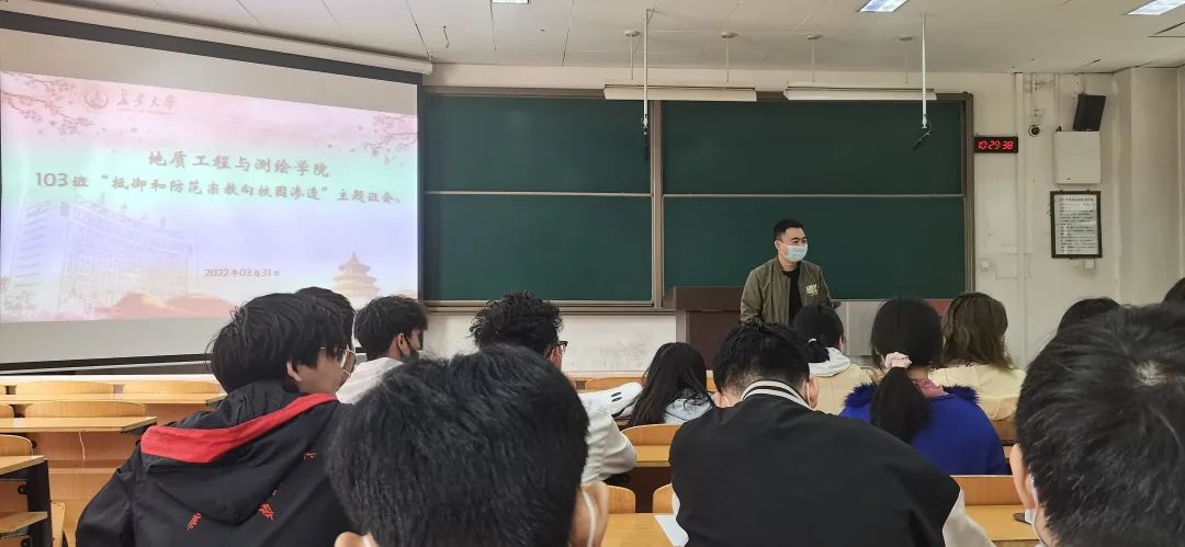 2021级103班召开“树立正确宗教观,抵制宗教渗透校园”主题班会。本次班会由103班团支书魏旭博主持,2021级辅导员杨海城和班级全体同学参加。