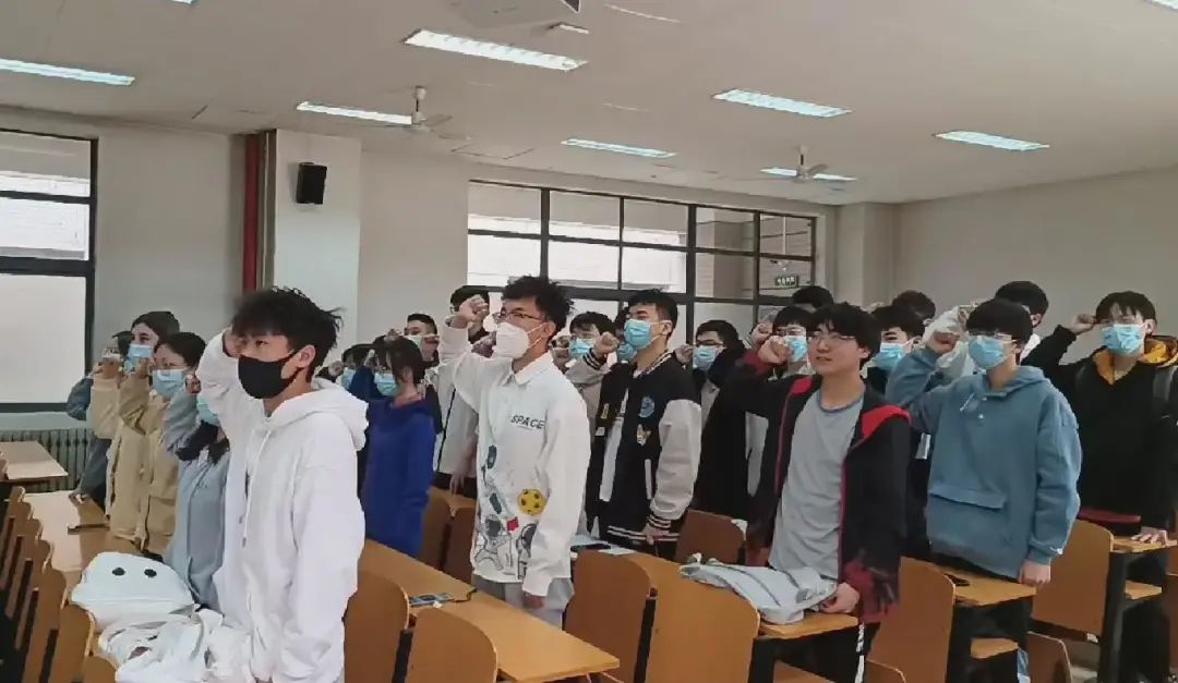 最后,团支书魏旭博同学的带领同学们重温入团誓词,激励同学们不断奋斗、追求卓越,把自身发展融入到为祖国繁荣富强而奋斗的历程中,践行强国有我的担当,为第二个百年奋斗贡献自己的青春力量。