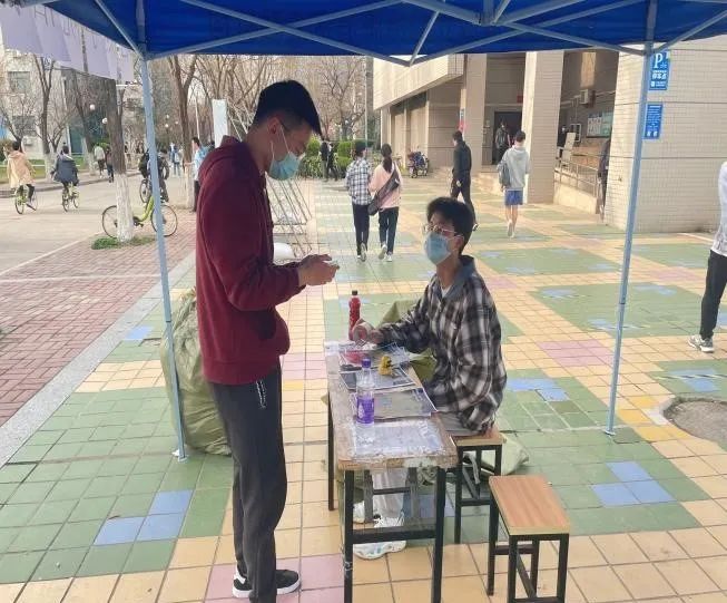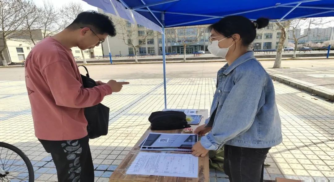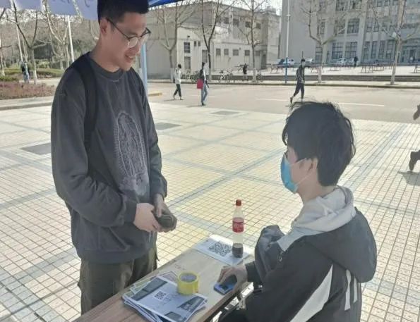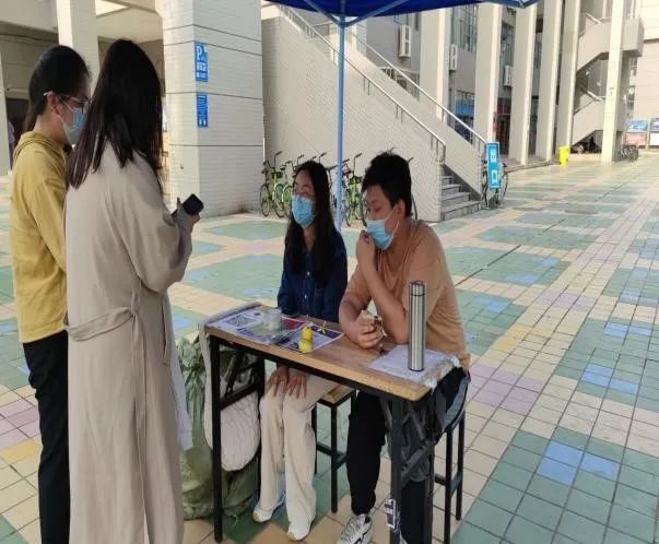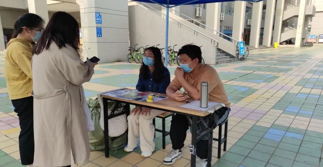 青年志愿服务队在树蕙园餐厅、滋兰园餐厅路口设立活动帐篷点,采取线上线下相结合的方式宣传活动:线上,色色啦