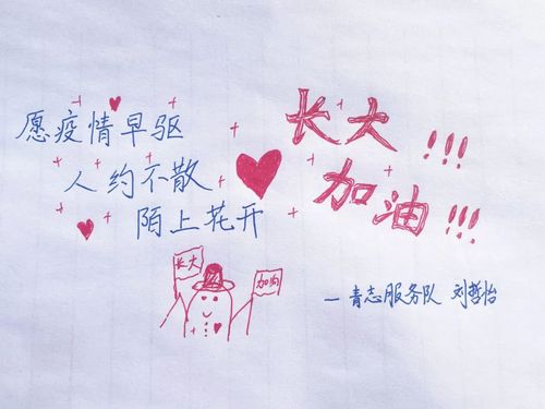 疫情当下,没有人是一座孤岛,色色啦 全体师生共同的辛勤付出在疫情的迷雾里为长大点亮了一盏盏明灯,同学们在服从指挥的同时将感恩与祝福落笔纸上,一笔一划写出了对长大最真挚的祝愿,一字一句道出了战役必胜的坚定信念!纸短情长,我们要相信,爱的温度传播得比疫情更快,凛冬终将散去,长大终会迎来繁华安宁的春天!