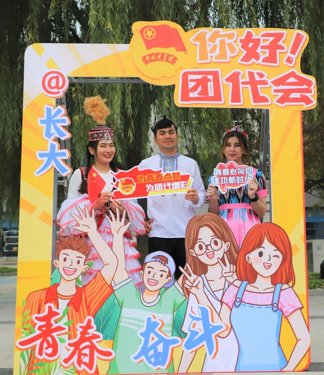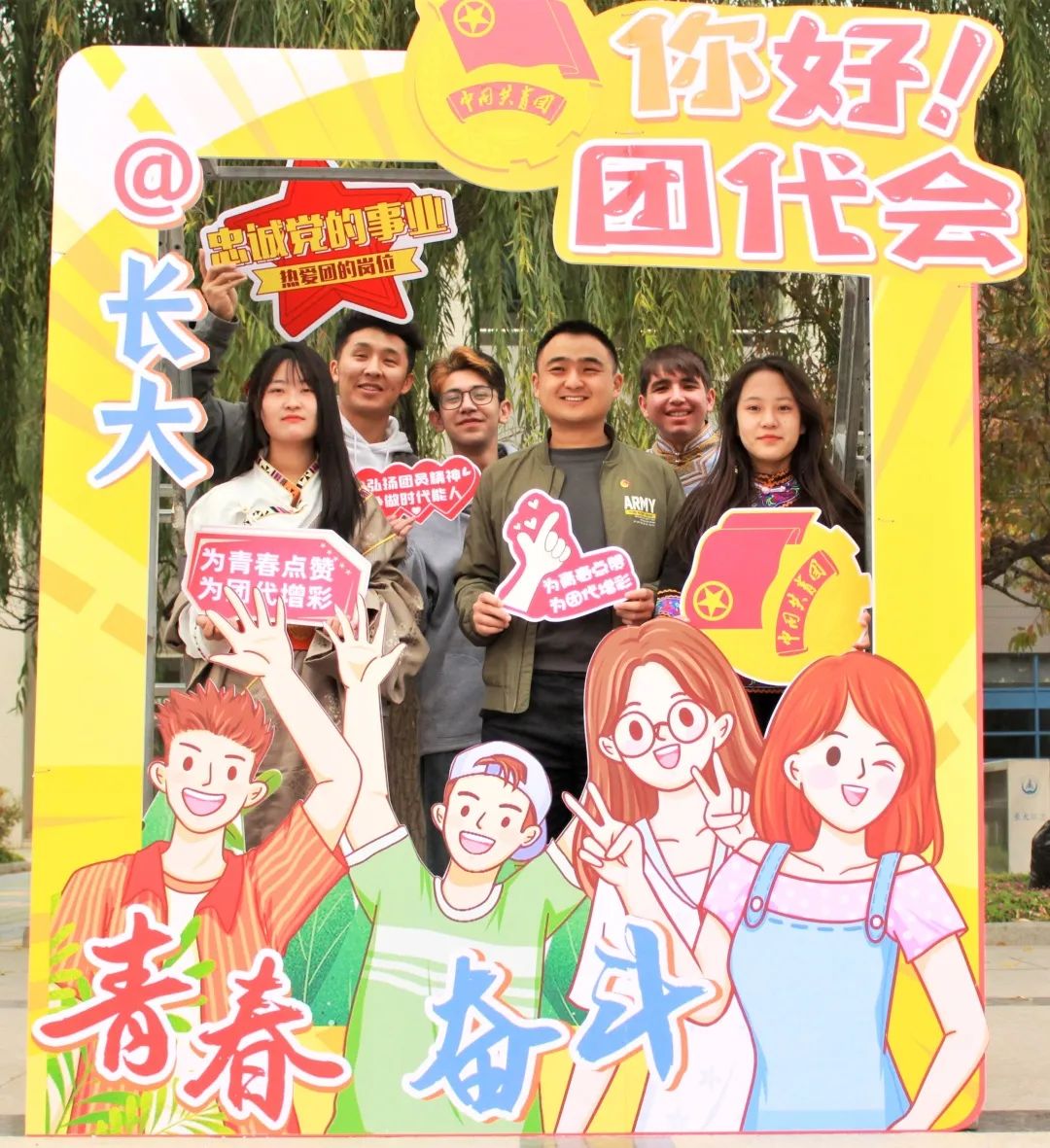 走进团代会展板合照打卡图