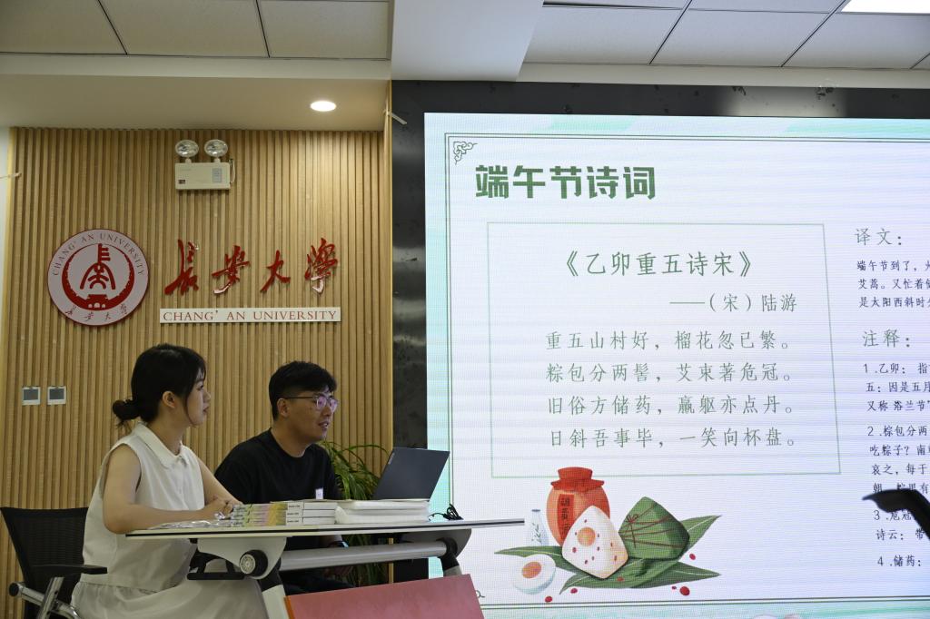 于朝晖园团体活动室举办了“星辰下的石榴红”系列活动,文脉传承,合和共生——“诗韵楚风,艺蕴端阳”中华传统文化教育活动。2023级辅导员史杨季、2021级辅导员王润涵主持本次活动。