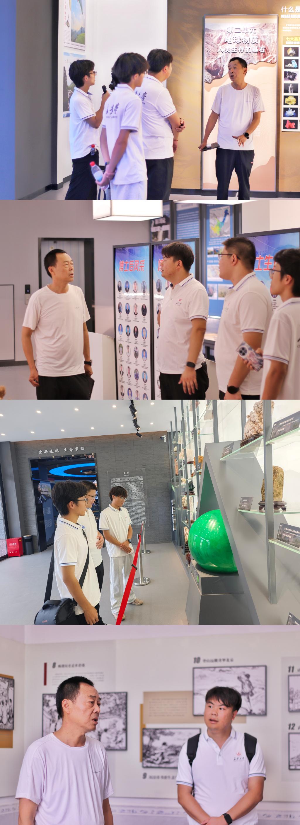 展厅第一展区以“生命演化”为主线,系统呈现圈层结构、板块运动及地貌演化等地质过程,完整回溯生命起源脉络,聚焦“地球物质”,通过矿物、宝石及岩石标本,展示我国重要矿产的种类分布与资源特征;第二展厅以“地质工程”为主题,呈现院士团队的科研历程及其科研成果;3D互动体验项目,让队员们直观感受大别山区的形成过程。
