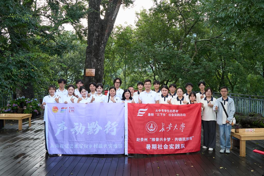 在驻村第一书记张俊的带领下,实践队来到了普梯古寨。展文旅融合促进乡村振兴调研及普通话推广实践活动。实践队通过走访当地村民、调研文旅资源、旅游发展现状及面临的机遇与挑战,为古寨文旅融合发展收集第一手资料;并通过趣味教学、游戏互动等形式开展推广普通话实践,助力乡村文化振兴。期间,实践队与同在此地开展实践的上海视觉艺术学院团队举行座谈交流,双方围绕乡村文化传承、铸牢中华民族共同体意识、大学生实践助力乡村振兴等话题深入探讨,分享实践经验与感悟。实践队还受邀参与上海视觉艺术学院团队策划的“村晚”联欢晚会,队员们通过文艺表演与村民互动,展现青春风采,丰富了村寨文化生活,也让实践活动更接地气、更具温度。