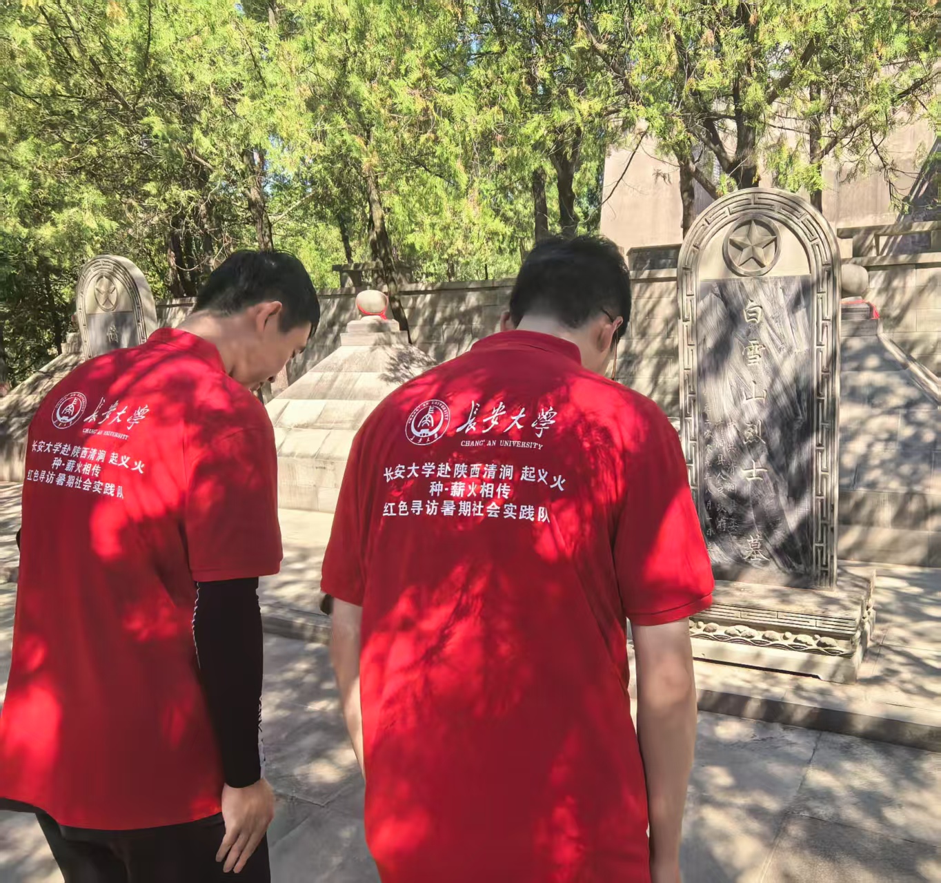 在不远处的人民烈士纪念碑上,许光达将军题写的“为党为人民而牺牲永垂不朽”十二字熠熠生辉。纪念碑下,随着讲解员的诉说,实践队重点学习了储汉元、黄锦绣、白雪山三位烈士的英勇事迹。队员们被储汉元团长在解放清涧战役中身先士卒、壮烈牺牲的故事深深打动;黄锦绣烈士29岁便为革命献出生命的事迹,让队员们深刻体会到信仰的力量;白雪山队长投身革命、鞠躬尽瘁的精神,更让队员们感受到共产党人的初心与使命。这些鲜活的革命故事,为队员们上了一堂生动的党史教育课。