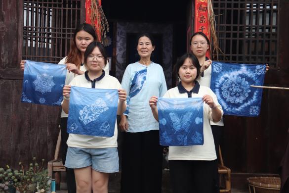 队员体验非遗豆染技艺