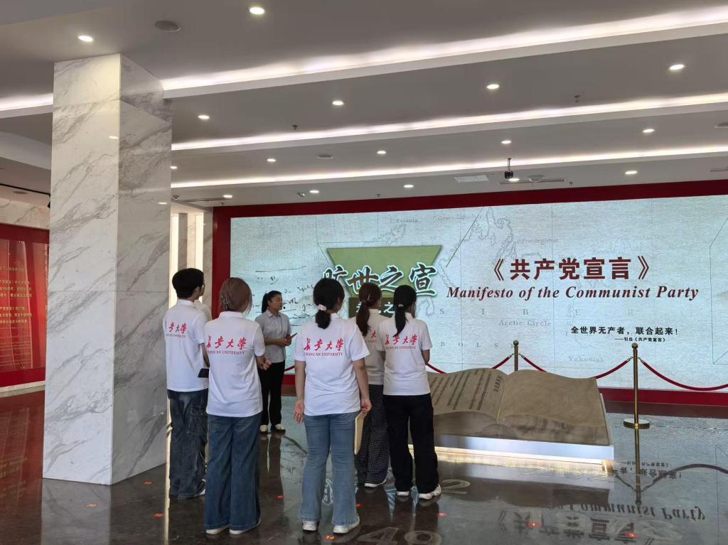 红色刘集教育基地,作为承载厚重革命历史的精神高地,拥有《共产党宣言》陈列馆、中共刘集支部旧址纪念馆等多个教学场馆。踏入基地,实践队成员们首先来到《共产党宣言》陈列馆。馆内,珍贵的历史文献、实物与生动的展陈,清晰还原了《共产党宣言》在刘集传播、滋养革命火种的历程。队员们驻足凝视,聆听着讲解员讲述革命先辈守护、践行真理的故事,深刻体悟到信仰的力量,了解到这份红色经典如何在岁月中点燃当地群众的革命热情,成为指引奋斗的灯塔。