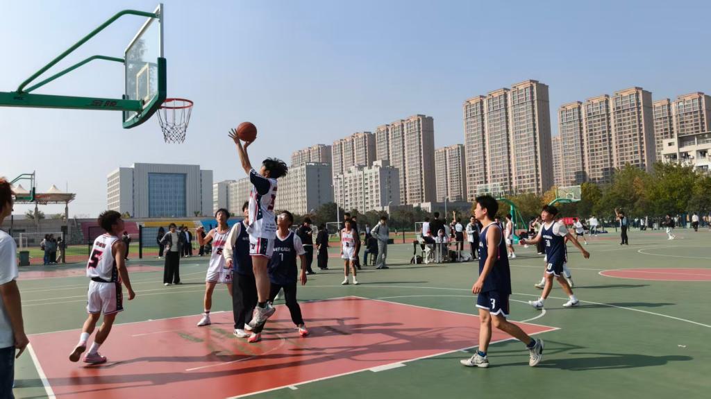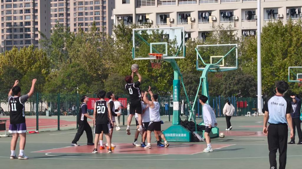 “新生杯”篮球赛总决赛于西区篮球场,正式开赛。本次比赛由703班与104班竞争冠军,102班与103班竞争季军。辅导员老师与各班同学到场观赛。