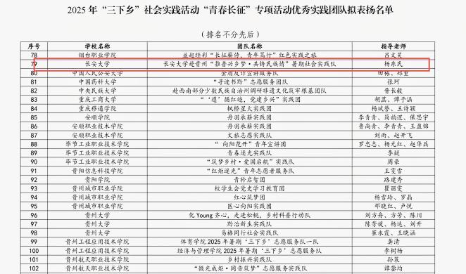 赴贵州“推普兴乡梦·共铸民族情”暑期社会实践队入选专项活动优秀实践团队表扬名单。