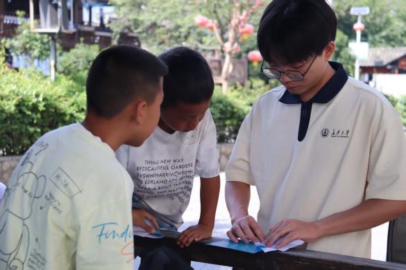 在兴义普梯村,队员们参与分拣分装劳动,结合产业场景向村民推广普通话,破解文旅融合的语言障碍。针对龙井村儿童设计的游泳竞赛、创意折纸等趣味活动,将语言教学融入游戏互动。实践队更协助举办布依族篝火晚会,通过直播展演铜鼓舞、转场舞等非遗项目,吸引线上互动超两万次,以数字技术架设文化传播新桥梁。