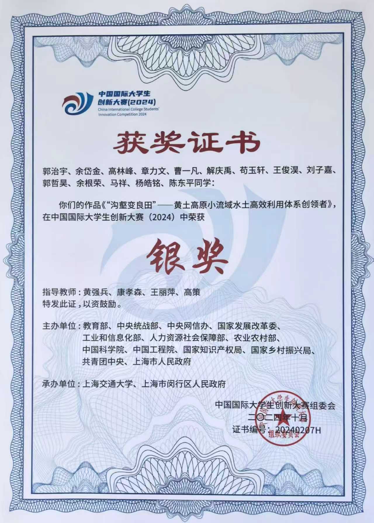 地质工程系学生团队凭借《沟壑变良田—黄土高原小流域水土高效利用体系》项目,经过激烈角逐,从全球514万个项目中夺得国家级银奖。本届大赛共吸引2083.6万人次报名,覆盖153个国家和地区的5406所学校,是我国级别最高、覆盖面最广、影响力最大的大学生创新竞赛。该项目团队成员由郭治宇(项目负责人)、余岱金、高林峰、章力文、曹一凡、解庆禹、苟玉轩、王俊淏、刘子嘉、郭哲昊、余根荣、马祥、杨皓铭、陈东平等14位同学组成,指导教师为黄强兵教授、康孝森副教授、王丽萍和高策老师。该团队作为本届大赛中色色啦