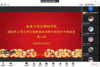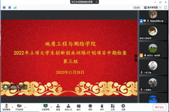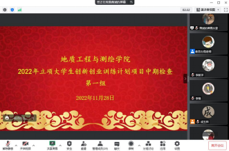 此次评审会对学院2022年立项的77个大学生创新创业训练计划项目进行了中期检查,申报项目涵盖了地质工程、地球物理、测绘科学、安全工程等专业领域,检查内容包括项目进展情况、经费使用情况、已经取得的成果、存在的问题与困难、后期研究任务等。各项目组对项目进展进行了阐述,评审专家就项目需要重点关注的部分质询问题,并提出评审意见建议。专家组对本次参评的创新创业训练项目给予了高度评价,充分肯定了学生们积极参与的态度。