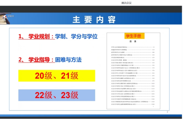 为指导学生科学规划学业,理清专业选择、学业发展、职业选择的思路,提升学业规划能力,进行正确的职业定位,2023125日晚,地测学院安全工程系开展本科生学业生涯规划指导会。会议由安工系副主任李凯玲老师主持,学院教务办韩冬冬老师、高策老师、安工系全体教师及学生参会。