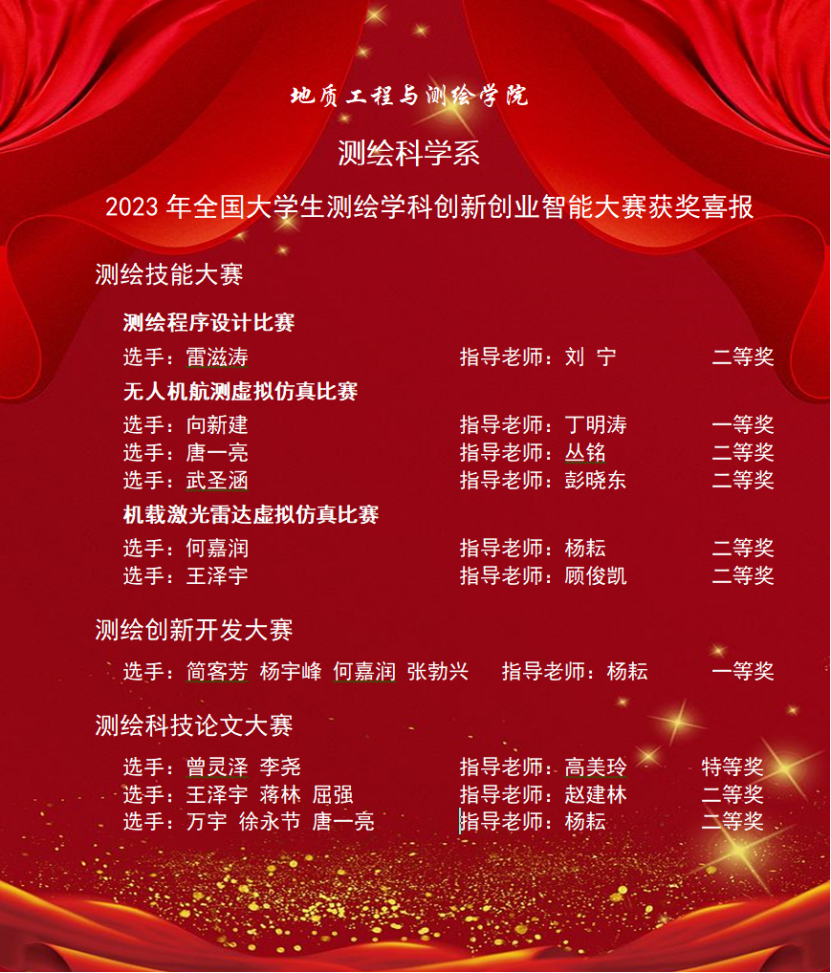 测绘专业本科生获奖名单