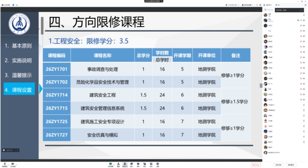 安全工程系召开了2022级安全工程专业专业分流线上宣讲会。安全工程系副主任李凯玲、教师屈璐,以及安全工程系2022级本科生共计四十余人参加了会议。会议由李凯玲副教授主持。