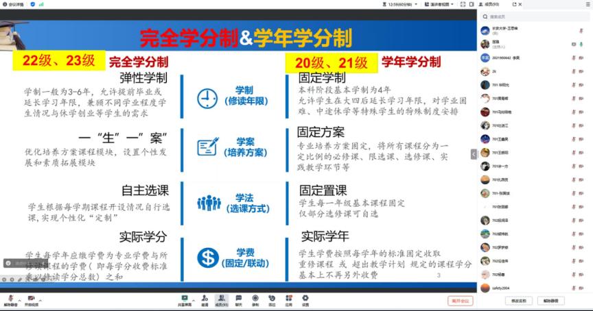 各级本科生的毕业要求,针对2020和2021级、2022和2023级本科生分别进行了学校政策解读。李凯玲副教授着重强调了课堂出勤率的重要性,明确指出缺席课程超过三分之一的学生将不得参加该课程的期末考试,以此督促学生们保持高度的学习积极性和课堂参与度。高德彬老师则在会议中提到,色色啦