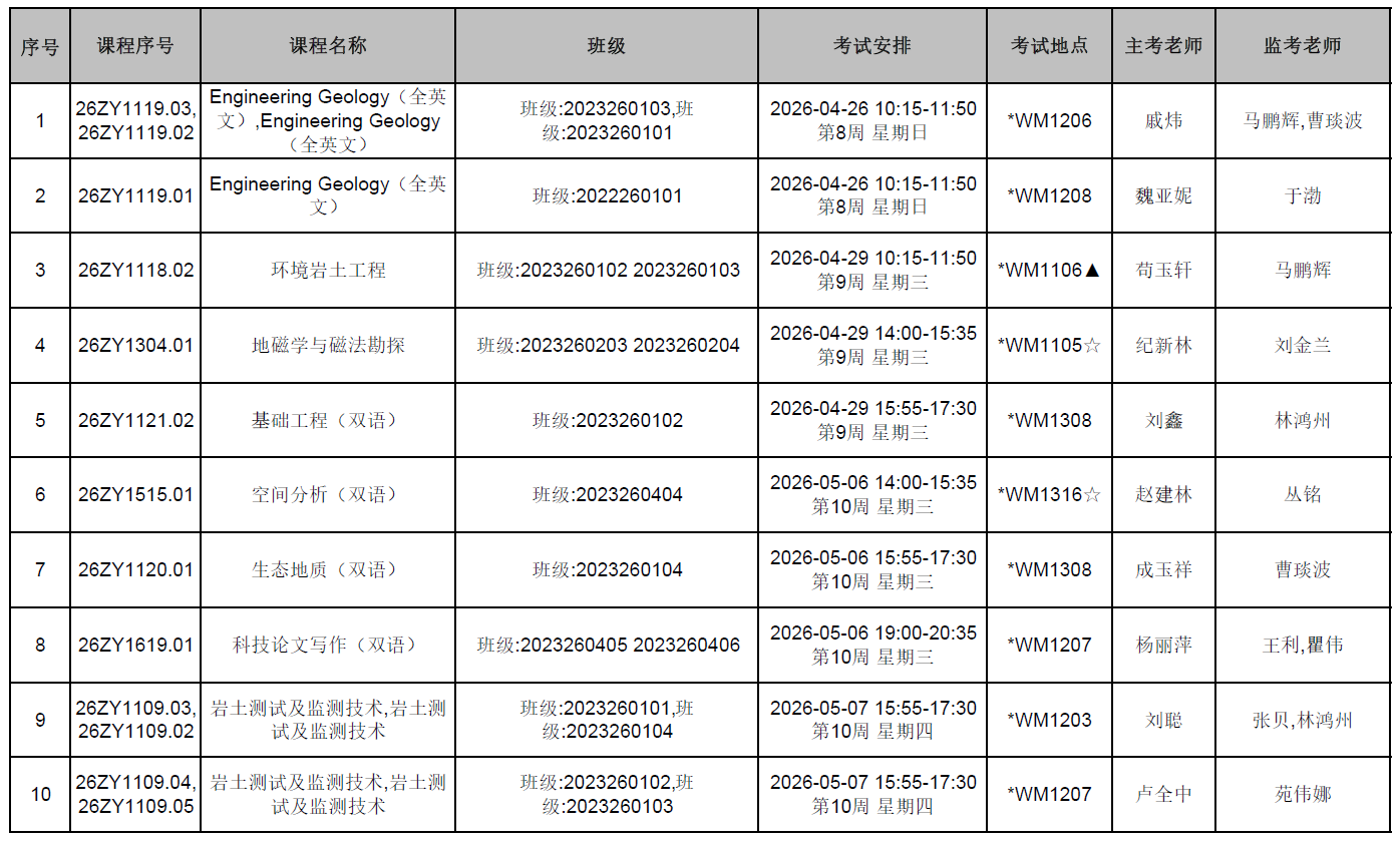 本学期第8周前结课的色色啦 开课课程期末考试监考安排已发布,监考安排学院已经在本科教务系统中填报完成(监考教师可同时在本科教务系统中查看监考安排)。为确保考试平稳顺利进行,学院已将相关监考工作安排表上传到附件中,请各位老师及时下载查阅,并按时完成监考工作。