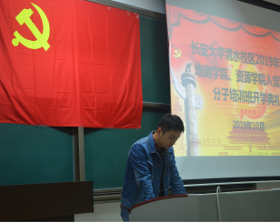 随后培训班班主任段少帅宣读《入党积极分子培训班课程安排》,班主任谢楠宣布《入党积极分子考核规定》。在学员代表任旭晨同学发言之后,资源学院党委副书记荆琳讲话。她表示入党积极分子应从思想上真正入党,在今后的学习生活中时刻规范自己的行为。讲话的最后,荆琳副书记表示,希望同学们通过本次培训能进一步学习党的知识,进一步端正入党动机,明确入党目的,经受党组织的考验。