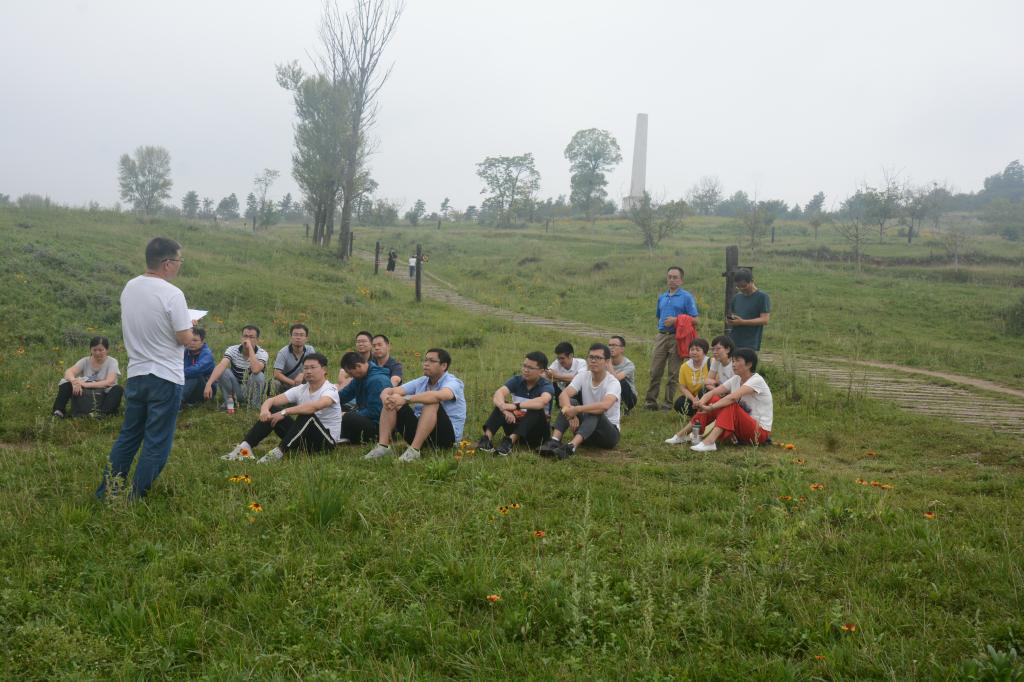 随后,在纪念馆附近的草地上全体党员进行了一次深入的党建学习活动,由上一届党支部书记王腾军老师给大家讲解了学校第四次党代会的主要文件精神,王利副院长从测绘学科发展及党员的自我要求上提出了建议,并勉励大家在教学科研上勇于创新。
